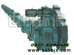 在封闭的机壳内借运动着的链条刮板与煤的摩擦将煤连续输出链条刮板在运行时埋于被输送的煤中固接在牵引链上的刮板在封闭的料槽中输送散状物料的输送机。这种输送机的牵引链和刮板都埋入物料中,刮板只占料槽的一部分断面,物料占料槽的大部分断面。它能水平、倾斜或垂直输送物料。水平输送时,所用刮板为平条形,利用埋入散料的链条和刮板对散料层的切割力大于槽壁对散料阻力的原理,使散料随刮板一起向前移动,此时移动的料层高度与槽宽之比在特定的比值范围之内,物料流是稳定的。需要进行垂直输送的埋刮板输送机